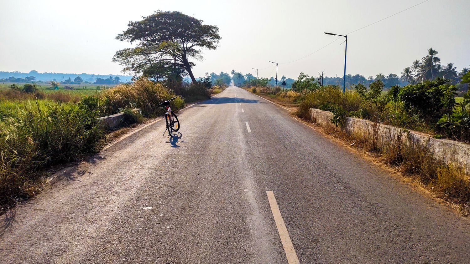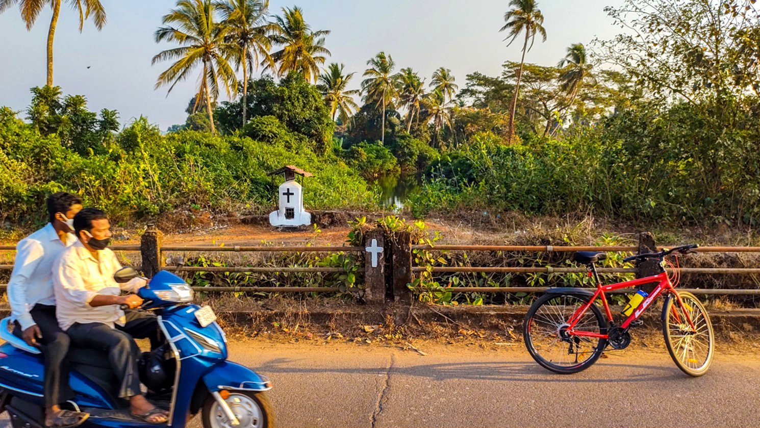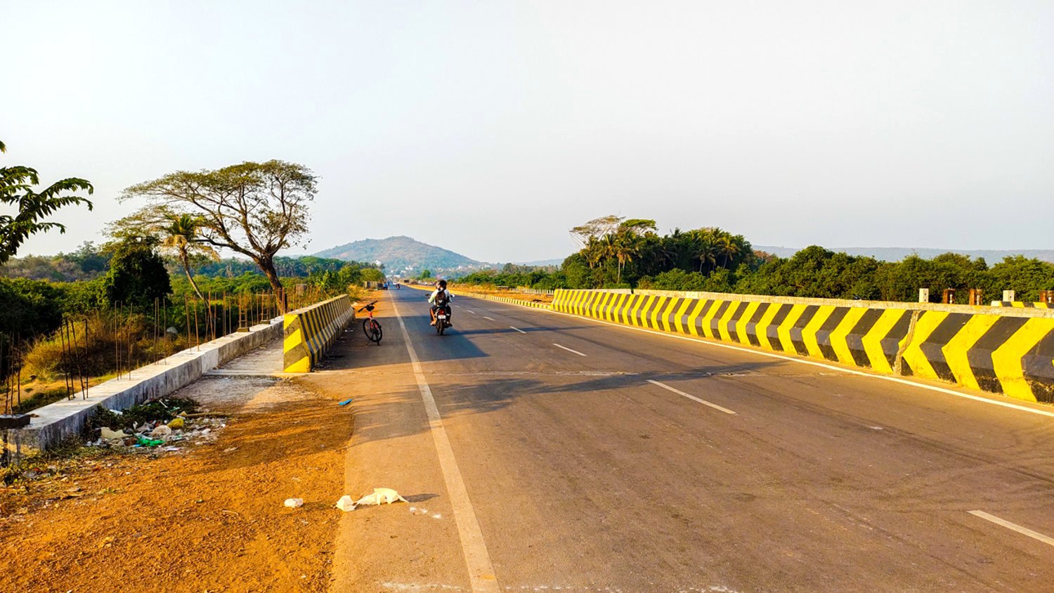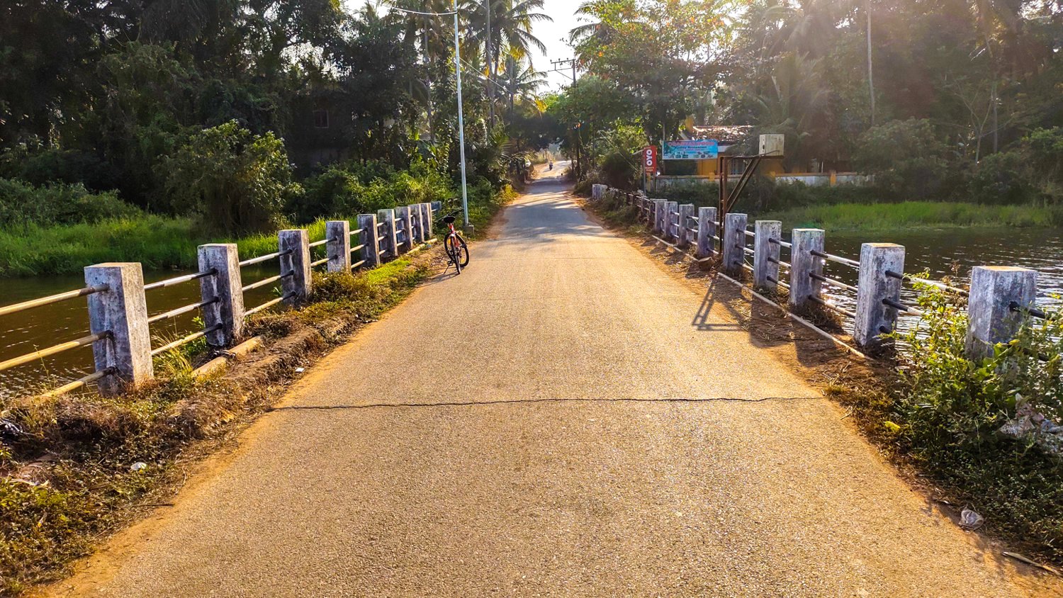Near the quaint cross (15.8 kms) crossing the bridge gets you onto the NH66 bypass road.