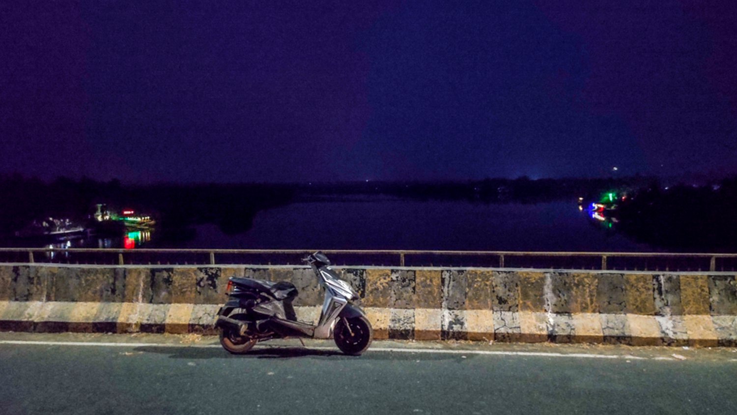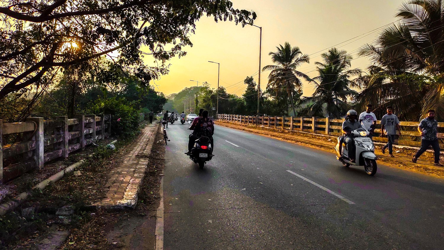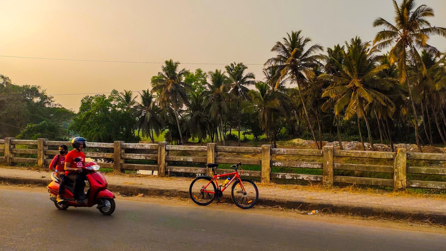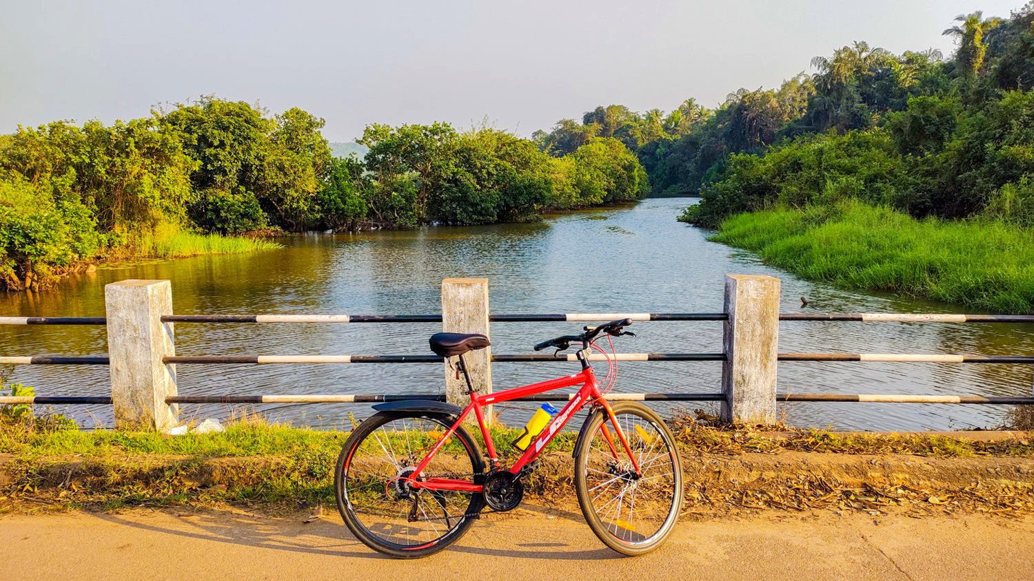 I ended the ride at the last point where the tarmac road ended with a view of the River Sal flowing into the Arabian sea, 49.2 km from the Verna plateau, the source where it originates. The end of the road is 700mts from Leela Resort from where the rotating light of the Betul Light House could be seen opposite the river bank.