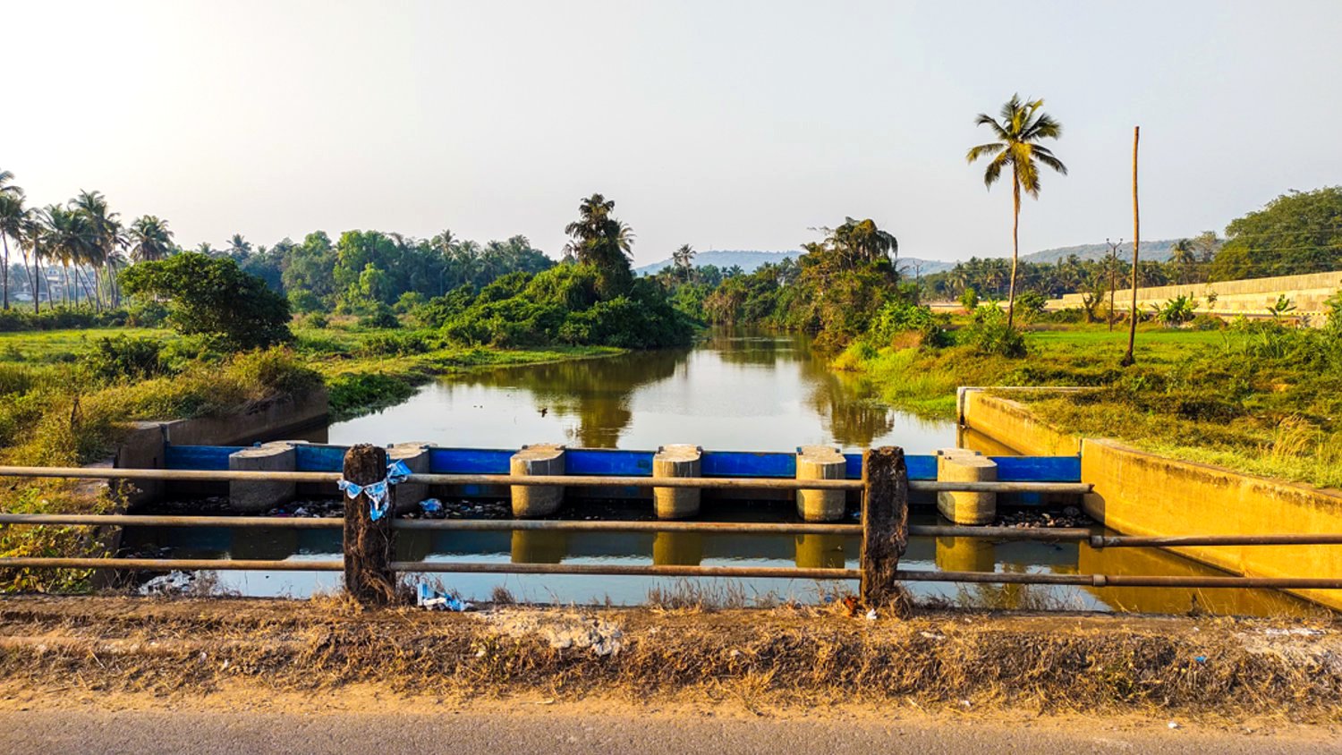 The fourth bridge is on the Nuvem – Majorda road were sluice gates are built to block the water flow in order to irrigate the fields