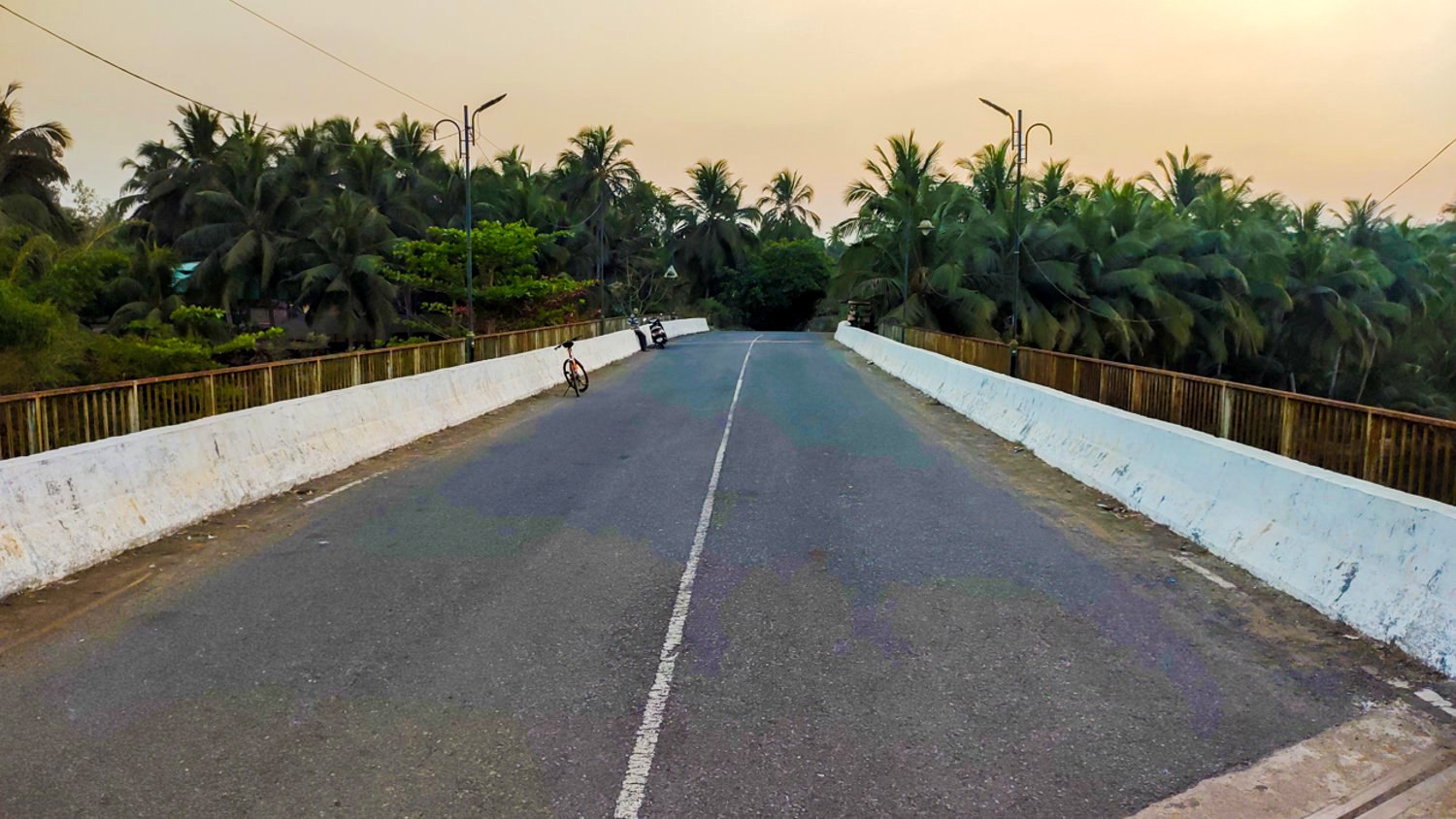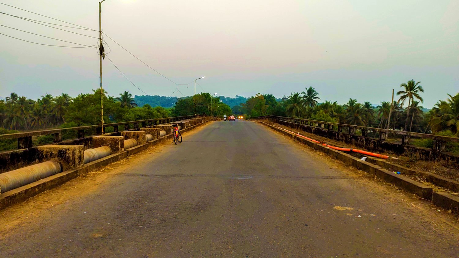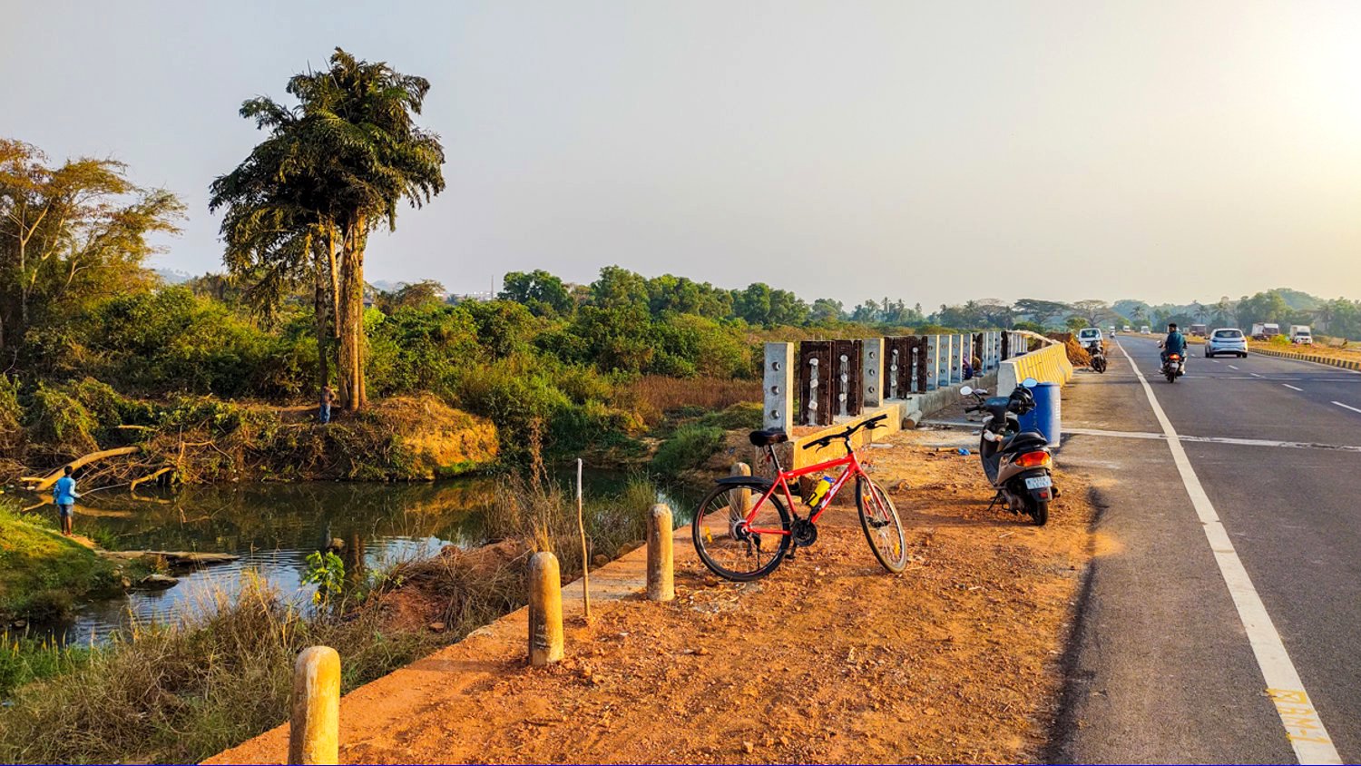 Cycling a distance of 4kms via Seraulim brought me to the new NH66 bridge, the only route where I had to take a U-turn and cross the bridge twice.